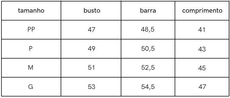 Tabela de Medidas