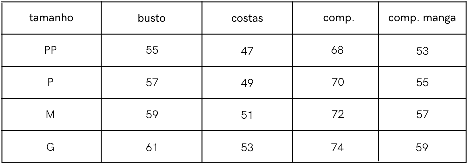 O Blusão Amarra possui caimento solto, amarração com faixas no pescoço, comprimento mais longo.