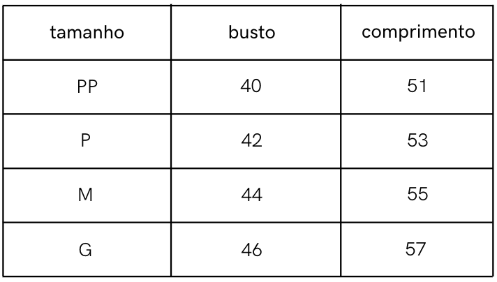 A Regata Malha Choux possui caimento soltinho, gola redonda. Aconselhamos lavar na mão com cuidado por ser uma malha fina.