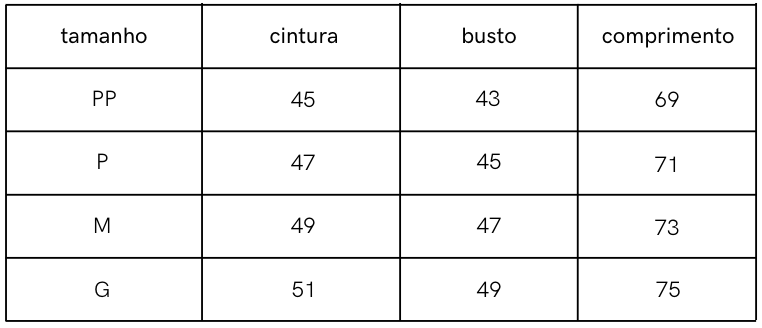 Tabela de Medidas